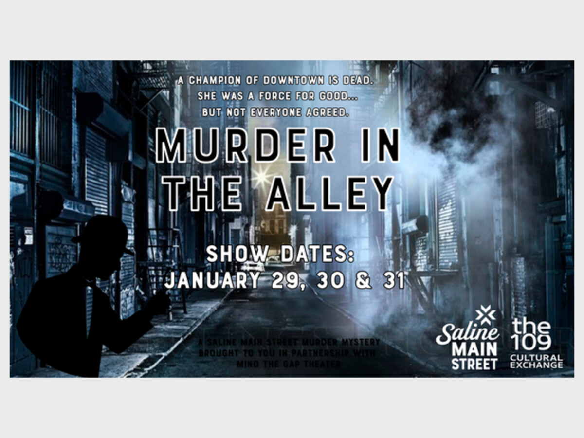 Murder in the Alley is an immersive murder-mystery experience presented by Saline Main Street in partnership with Mind the Gap Theatre. When a well-known downtown volunteer and building owner is murdered on the eve of a major community event, suspects are pulled into a tense town-hall meeting to uncover the truth.