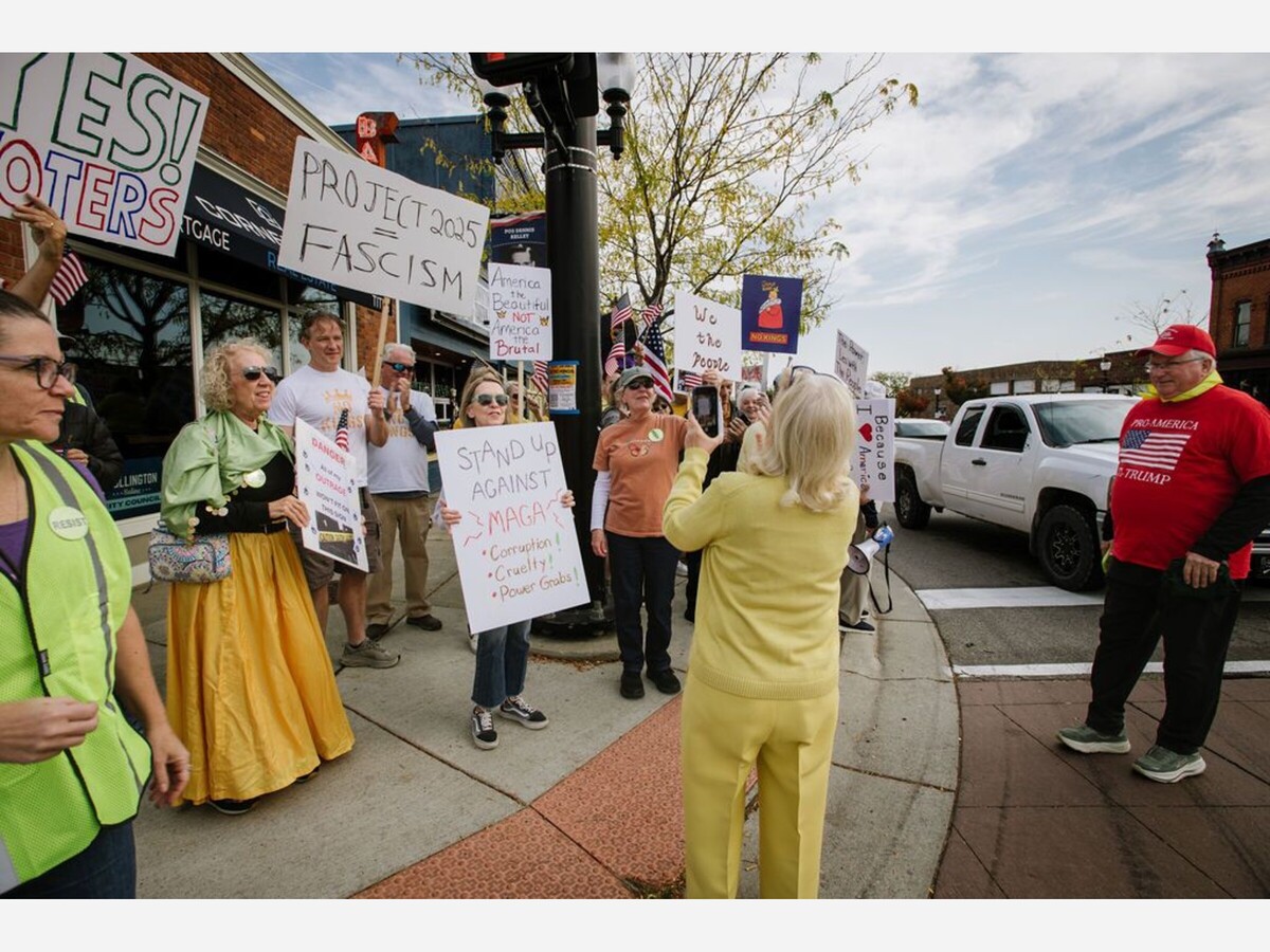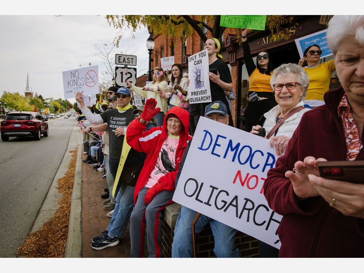 Protesters gathered across the country on Saturday, October 18, for the second No Kings rally hosted by the Indivisible community. Over ten thousand people rallied in Detroit, joining the seven million protesters nationwide. The Saline event was attended by approximately 950 people with homemade signs, flags, and costumes demanding accountability and reform from the current administration.