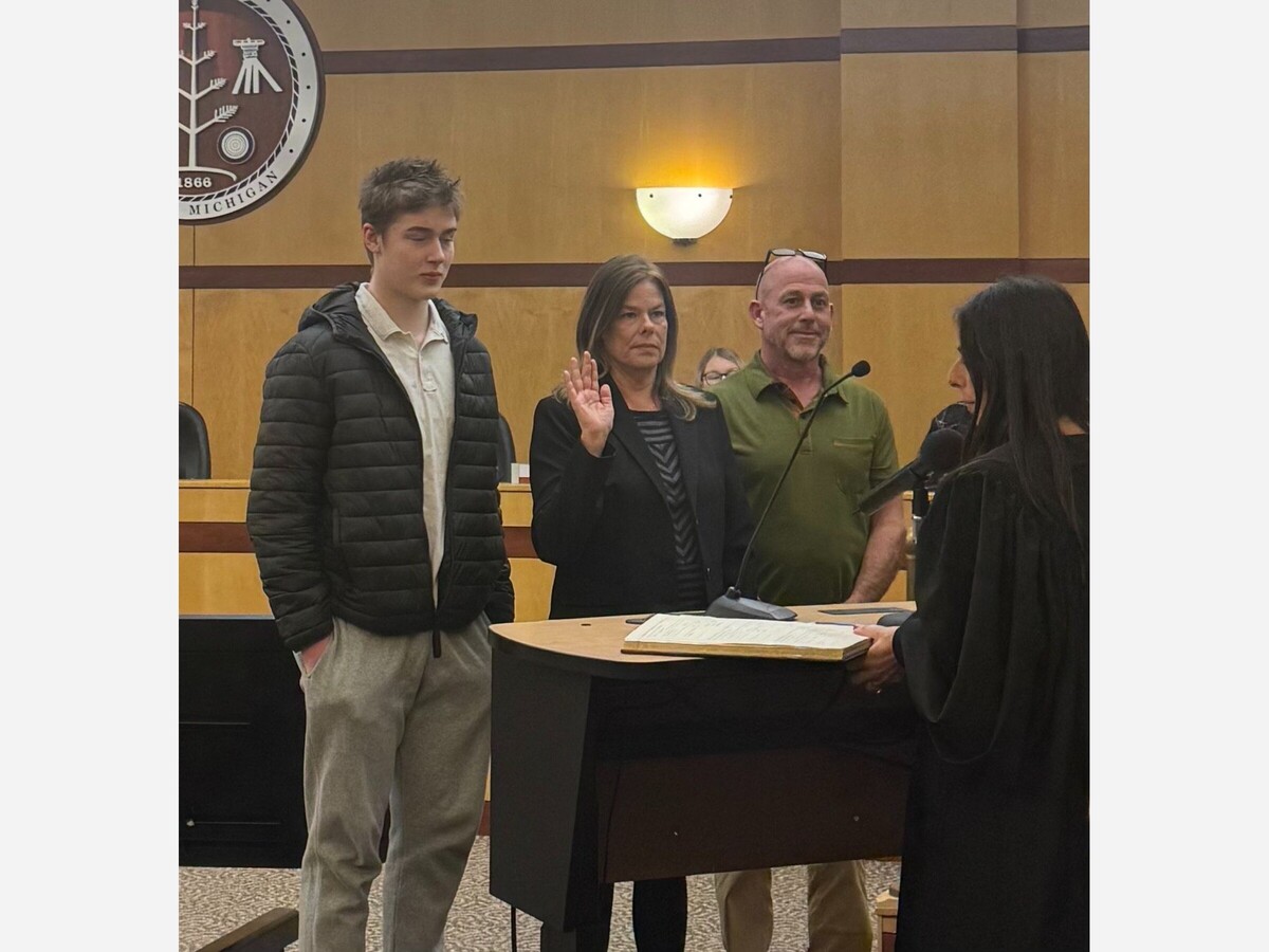 Circuit Judge Jinan M. Hamood administered the oath of office to three council members: incumbent Jenn Harmount, returning council member Jim Dell’Orco, and newly elected council member Tramane Halsch.